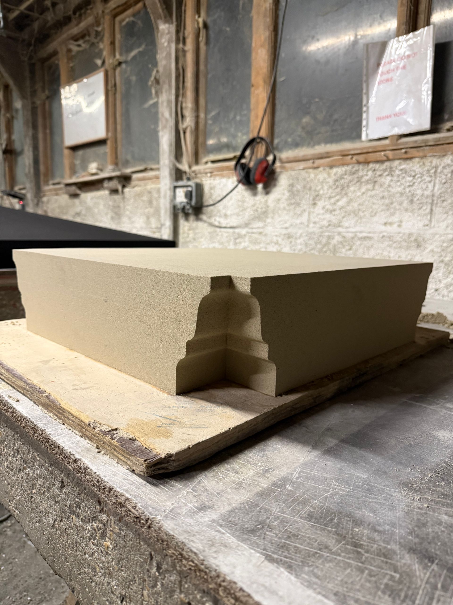 This particular style the moulding projects out/overhangs 60mm either side from the base.